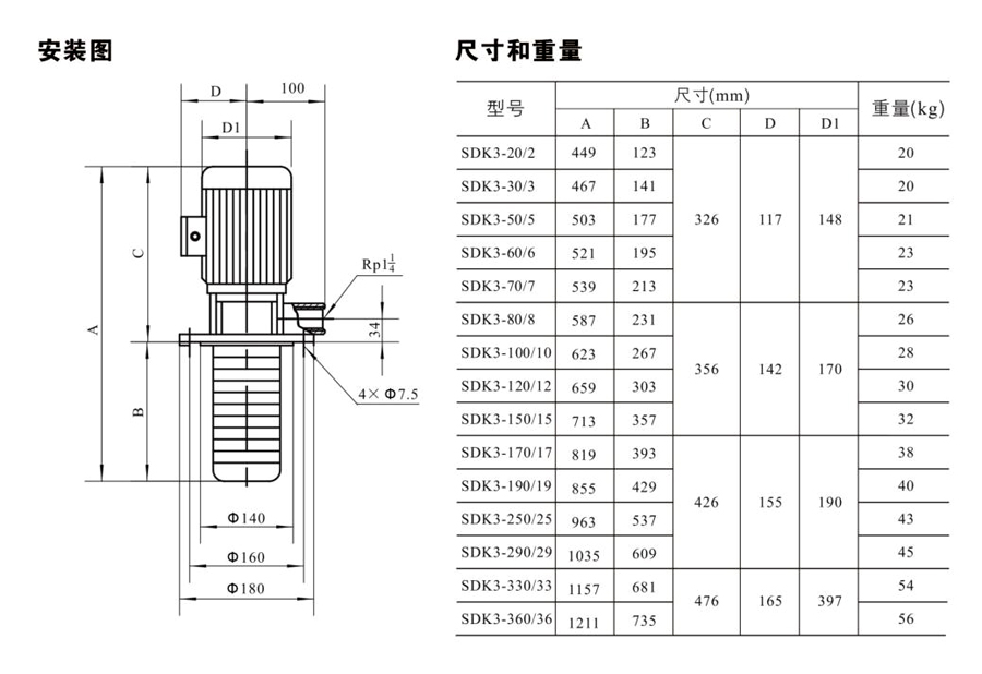 SDK3/SDKT3為配用標準電機的非自吸立式多級離心泵,電機軸和泵軸用聯(lián)軸器直接聯(lián)接的結構。為滿足水槽或容器的安裝深度,可安裝空套的腔體來改變泵本身的侵入 深度。
